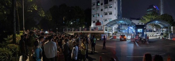 어젯밤 10명 이상의 체포자 가족들이 말레이시아 쿠알라룸푸르 십오비 경찰서 본부 밖에서 대기했습니다.