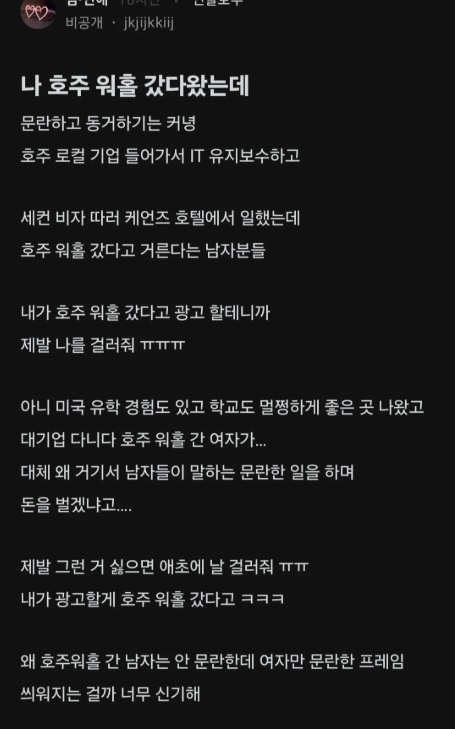 호주로 워홀 나도 갔다 왔는데 솔직히 10/8은 문란했습니다